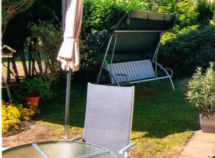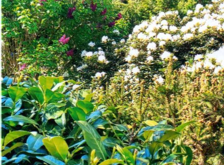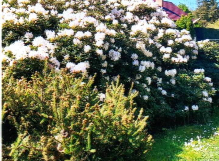 Hervorzuheben ist der besonders schön bepflanzte Garten mit herrlich großen, blühenden Rhododendren und anderem schönen Bewuchs. Das Grundstück ist pflegeleicht angelegt; es bietet neben sonnigen Rasenflächen auch schattige Plätze.
