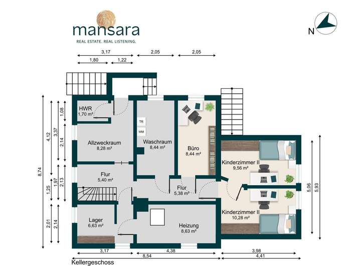 - Vollkeller mit Wohnbereich (drei Zimmer)