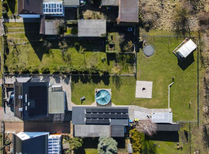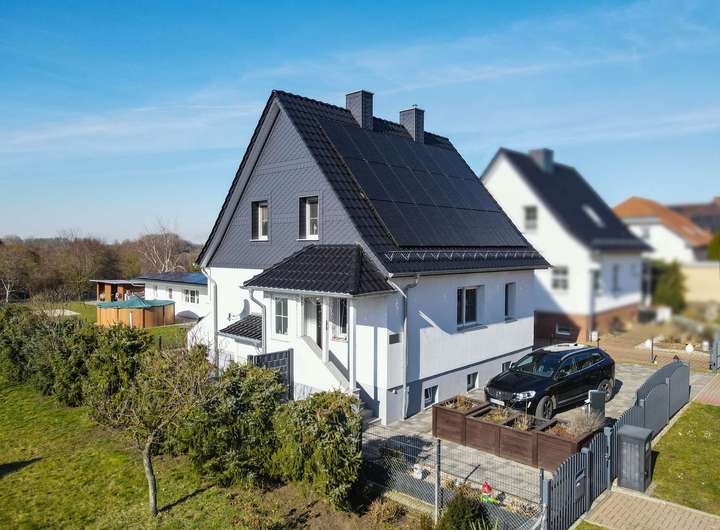 Eine PV-Anlage (2024) mit einem Speicher von 19,6 kWh gewährleistet eine nachhaltige Energieversorgung. Die Zufahrt erfolgt über ein neues elektrisches Tor, und es stehen eine elektrisch betriebene Garage sowie ein Außenstellplatz direkt vor dem Haus zur Verfügung. Zudem sind zwei Wallboxen (2024) zum Laden von Elektroautos installiert.