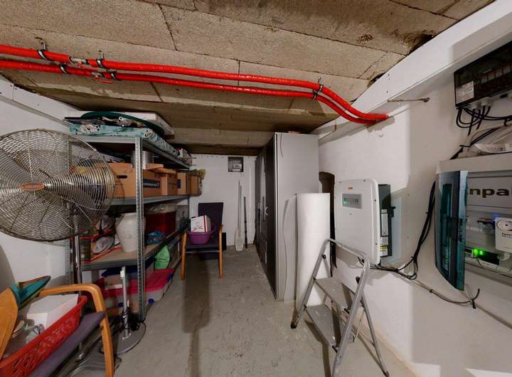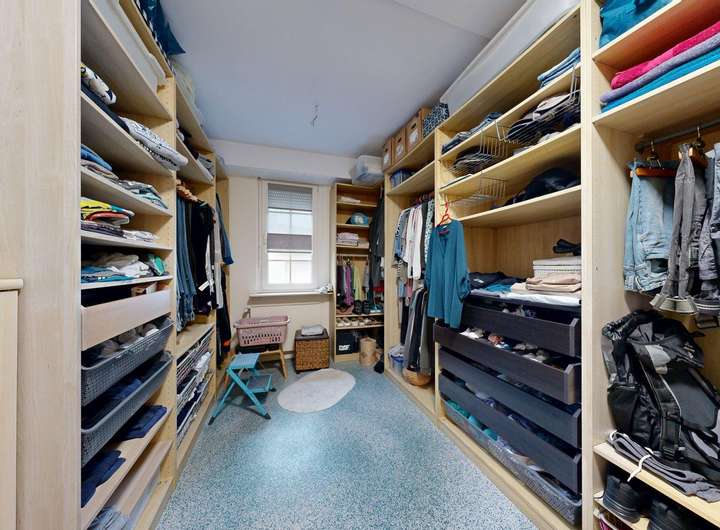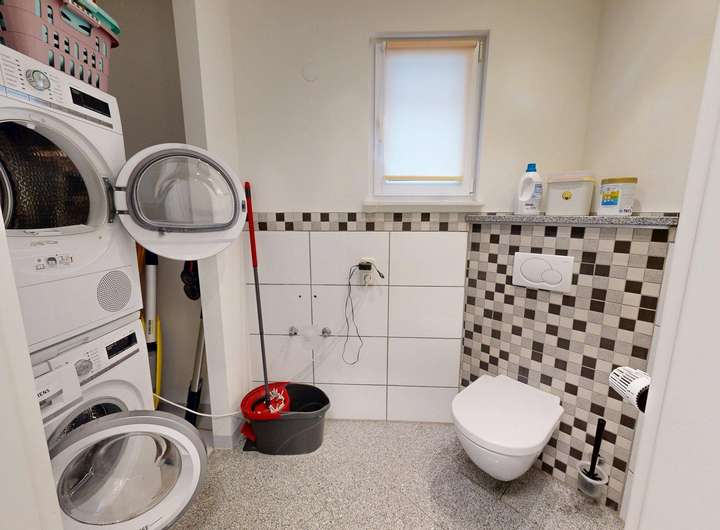 Im Erdgeschoss befindet sich der Flur, das Schlafzimmer, das moderne Badezimmer mit angrenzender Ankleide, sowie ein Gäste WC und ein Vorratsraum.
