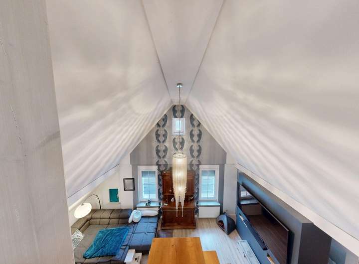 Über die Treppe gelangen Sie in den geräumigen Flur, die Küche mit Esszimmer und das Wohnzimmer welches bis unter das Dach geöffnet ist. Eine kleine Galerie in der Dachspitze bietet Ihnen einen gemütlichen Rückzugsort. Der Balkon ist überdacht, somit kann man auch bei Regentagen draußen sitzen.