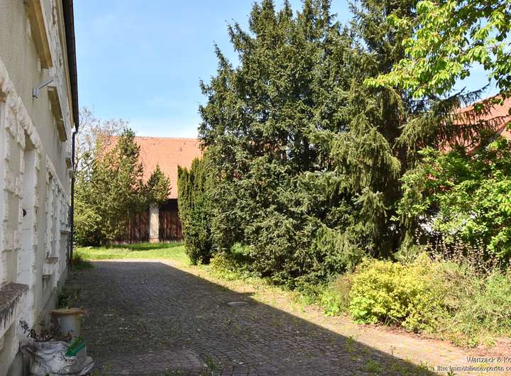 Auf der östlichen Seite stehen auf dem benachbarten Grundstück Nebengebäude im Rahmen einer Grenzbebauung.