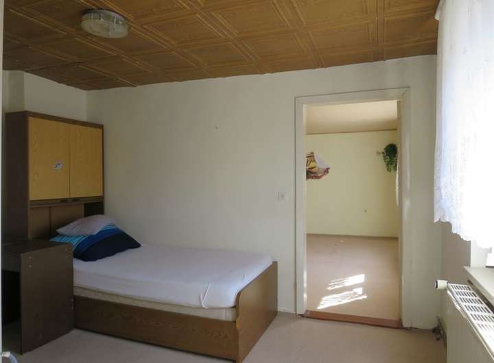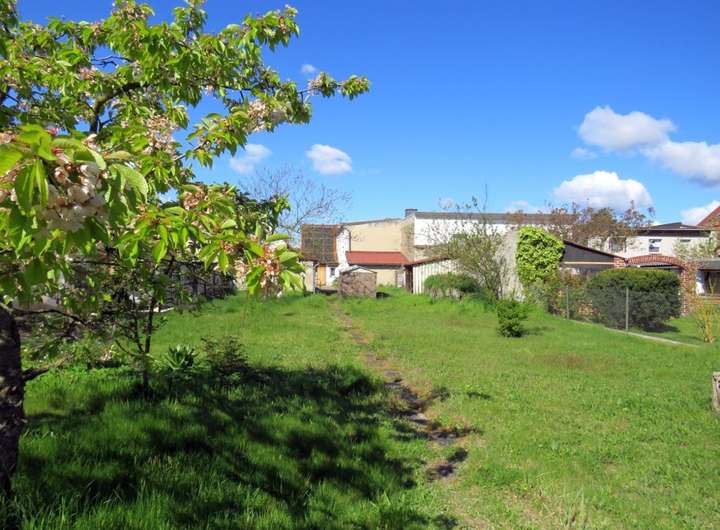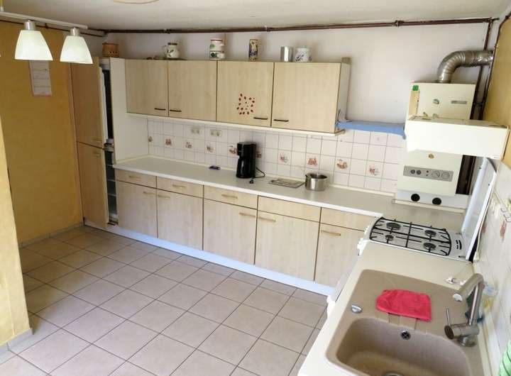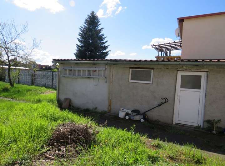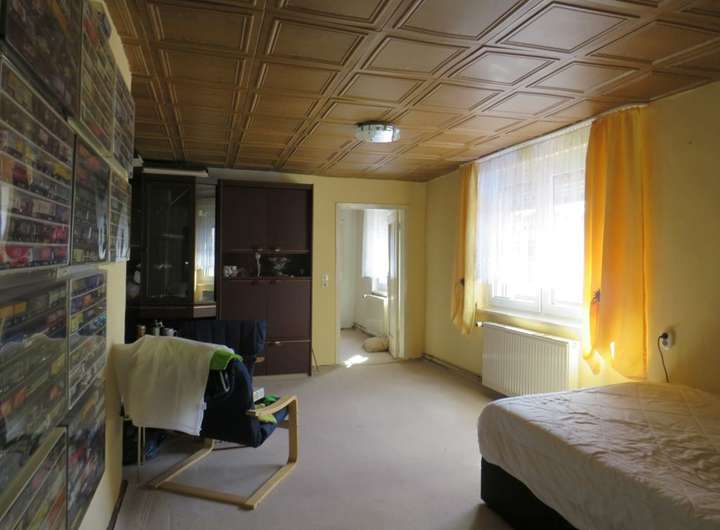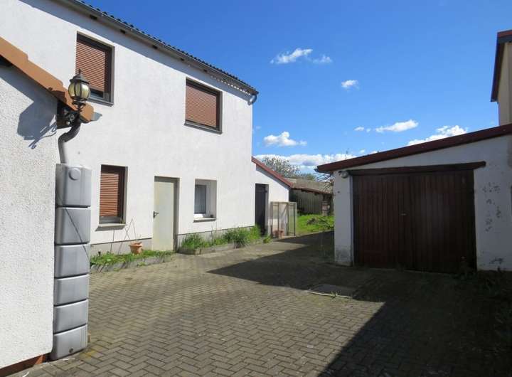 Die DHH wurde 1992 in vielen Bereichen saniert und bietet auf einer Wohnfläche von ca. 120 m² ausreichend Platz für einen 4-Personenhaushalt. Im EG befinden sich die Küche, das Wohnzimmer, ein kleines Gäste- Büro- o. Schlafzimmer und das Badezimmer. Das OG verfügt über derzeit vier Wohn-Schlafräume, wovon drei Durchganszimmer sind. Hier besteht die Möglichkeit mit geringem Aufwand ein zweites Badezimmer und sep. Schlafräume zu schaffen. Im hinteren Bereich des Hauses und von außen begehbar befinden sich der Hausanschluss-Raum, ein Geräteschuppen und ein Teilkeller. Über den rückliegenden Bereich des Hauses erstreckt sich das pflegeleichte Gartengrundstück. Gegenüber dem Wohnhaus (auf dem Innenhof) befindet sich zusätzlich ein Nebengelass mit Garage + Werkstatt und davor sind KFZ-Außenstellplätzen vorhanden.