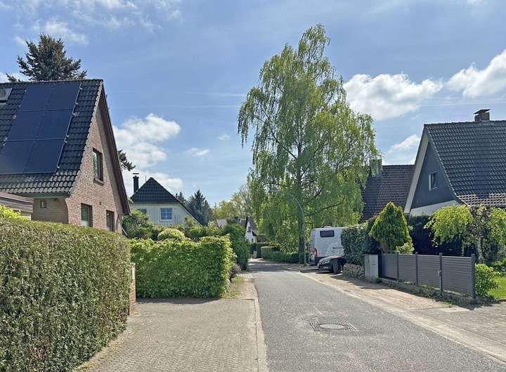 Die Immobilie befindet sich in Eidelstedt im beliebten Hamburger Nordwesten. Der Stadtteil ist äußerst familienfreundlich, erfreut sich aber auch zunehmend bei jungen Menschen an wachsender Beliebtheit. Das Grundstück liegt in einer ruhigen Anwohnerstraße im Osten des Stadtteils und in direkter Nachbarschaft zum Niendorfer Gehege. Damit einhergehen kurze Wege in zwei Stadtteilzentren: Sowohl der Eidelstedter Platz, als auch der Tibarg und das Tibarg-Center im Süden von Niendorf sind nicht weit entfernt. Hier konzentrieren sich jeweils Einzelhandel, Ärzte, Banken und Gastronomie. Darüber hinaus sind Kindergärten und Schulen mit teils ausgezeichnetem Ruf in größerer Zahl vorhanden. Zahlreiche Grünflächen, Wanderwege und eine Vielzahl von Sportangeboten unterstreichen den hohen Freizeitwert. Eidelstedt und Niendorf weisen trotz der Lage am Stadtrand eine gute Anbindung an die Hamburger Innenstadt auf. Die Anschlussstellen zu den Bundesautobahnen 7 und 23 sind in kurzer Zeit erreicht, ebenso wie der Flughafen Hamburg-Fuhlsbüttel. Für die Anbindung an den ÖPNV sorgen Haltestellen der Linie 181 sowie die U-Bahn-Station „Niendorf Markt“ (U2) und die S-Bahn-Station „Elbgaustraße“ (S3).