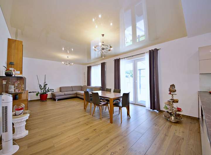 Auf einer Wohnfläche von ca. 129 m² verteilen sich drei großzügige Zimmer, die viel Platz für individuelle Gestaltungsmöglichkeiten bieten. Die lichtdurchflutete Atmosphäre in jedem Raum sorgt für ein angenehmes Wohngefühl. Besonders hervorzuheben ist der offene Wohn- und Essbereich, der zum gemütlichen Beisammensein einlädt.