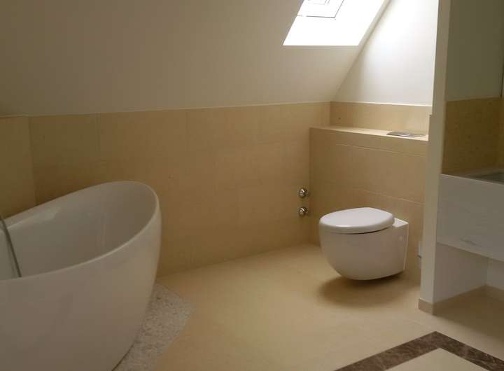 Dachgeschoss: 4 Schlafzimmer, Ankleide, Elternbad mit Wanne und Regendusche, Kinderbad mit Wanne und Dusche, Balkon