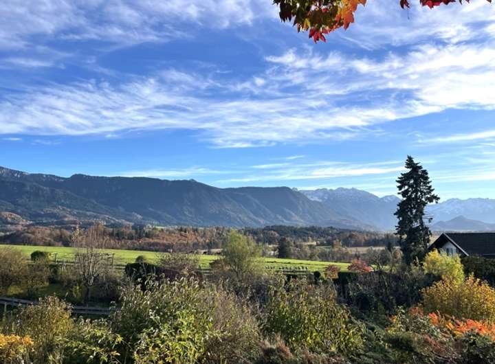 Eine absolute Liebhaberlage - freier Panoramabergblick über die gesamte Alpenkette bis ins Murnauer Moos.