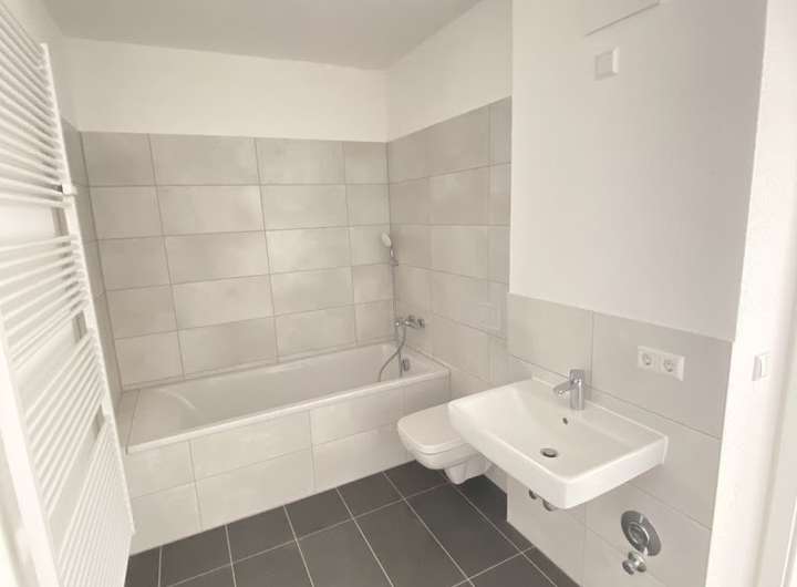 - modernes Bad mit Wanne und Handtuchheizkörper