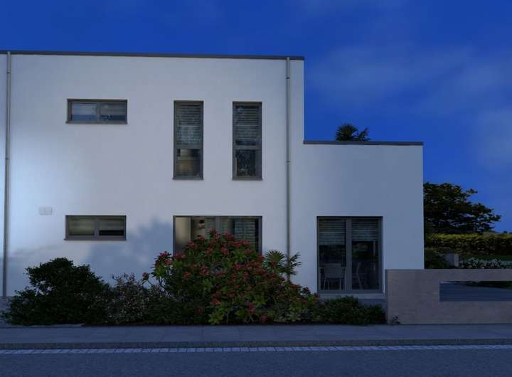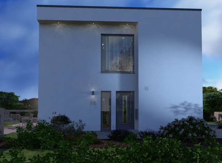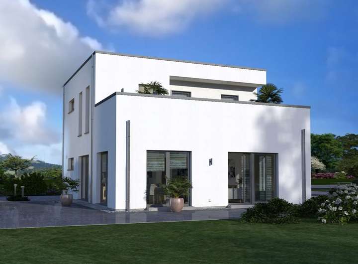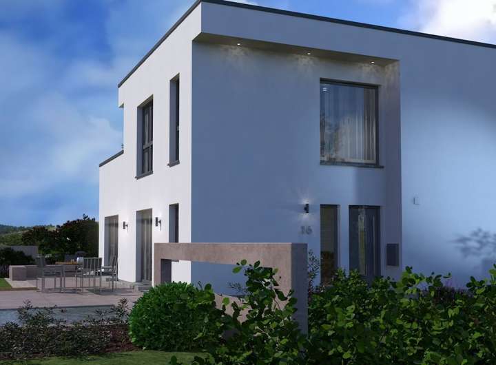 Wer das Besondere sucht, hat mit Staffel 13 sein Traumhaus gefunden. Die Flachdachvilla repräsentiert den Stil der klassischen Moderne und überzeugt sowohl innen als auch außen. Die Fassadenrücksprünge, die großzügige Verglasung und das eingezogene Obergeschoss setzen optische Akzente und stehen für eine Architektur der Extraklasse. Im Erdgeschoss begeistern die helle, nach oben geöffnete Diele sowie der große Wohn-, Koch- und Essbereich. In der oberen Etage kann der vom Eltern- und Kinderzimmer zugängliche XXL-Balkon für ungestörte Sonnenstunden genutzt werden. Besonders durchdacht präsentieren sich auch die geteilte Galerie und das von zwei Seiten begehbare Badezimmer. Ein Grundriss, der seinesgleichen sucht.