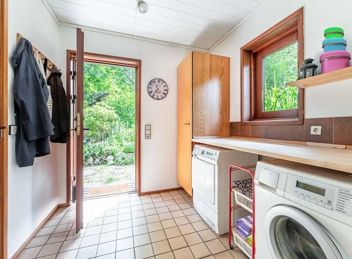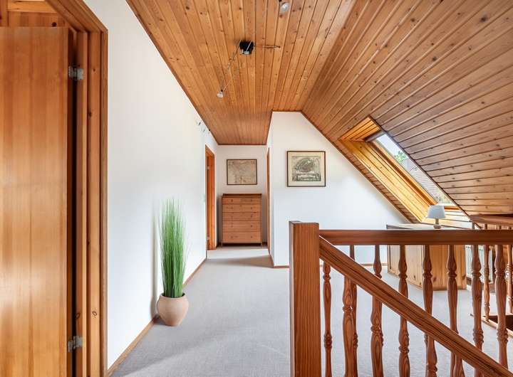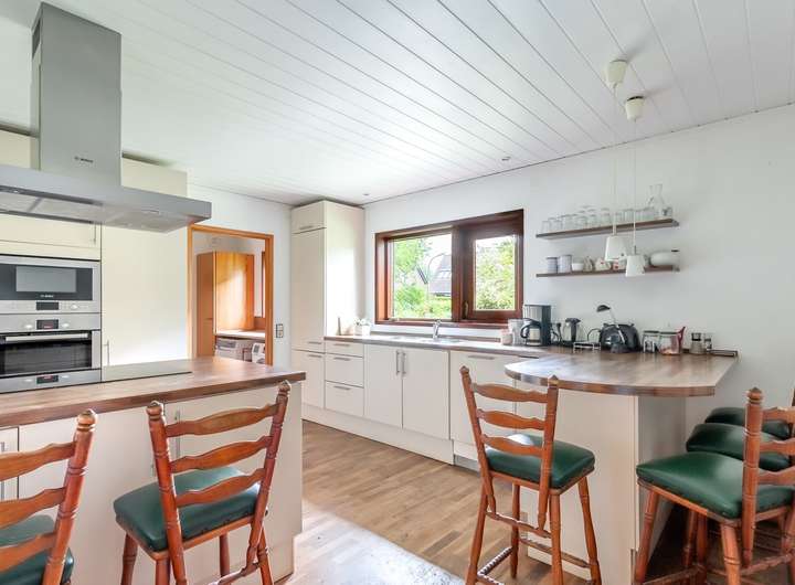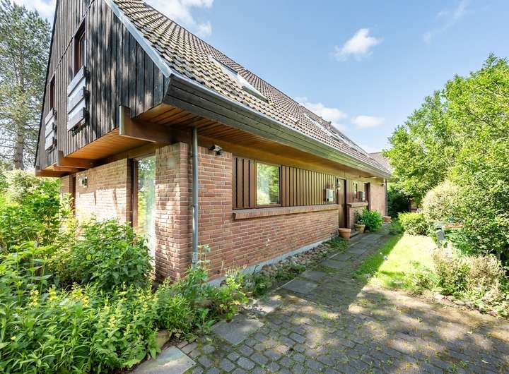 Fügt man beide Einheiten wieder zusammen, hat man ein überaus großzügiges und familienfreundliches Einfamilienhaus. Das gesamte Objekt präsentiert sich gepflegt und zeitlos modernisiert mit dem gemütlichen Charme dänischer Häuser.