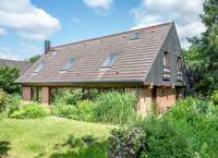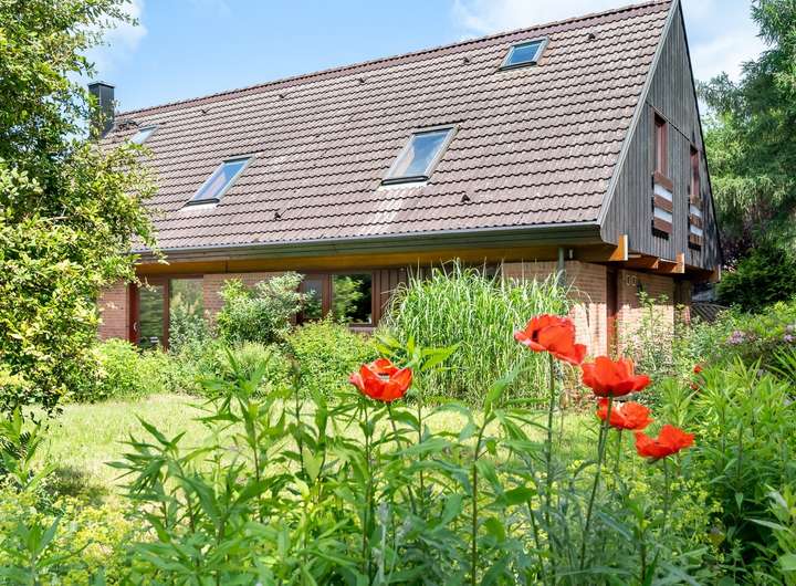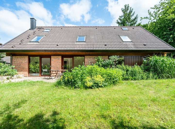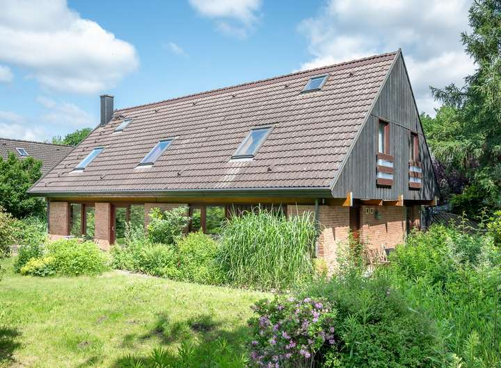 Angeboten wird ein ca. im Jahr 1984 in Holzrahmenbauweise errichtetes, modernisiertes Einfamilienhaus im dänischen Stil, welches derzeit in 2 Wohneinheiten aufgeteilt ist. Dies bietet größtmögliche Vielseitigkeit - entweder man belässt die Nutzung von 2 Wohneinheiten oder stellt den ursprünglichen Zustand eines Einfamilienhauses wieder her, was sich leicht durch Entfernen einer (Leichtbau)-Wand im Erdgeschoss und einer (kurzen) Wand im Obergeschoss erreichen lässt. Insgesamt bietet das Haus 6 Zimmer plus 2 halbe Zimmer bei einer Wohnfläche von ca. 190m². Das schöne Grundstück ist ca. 540m² groß.