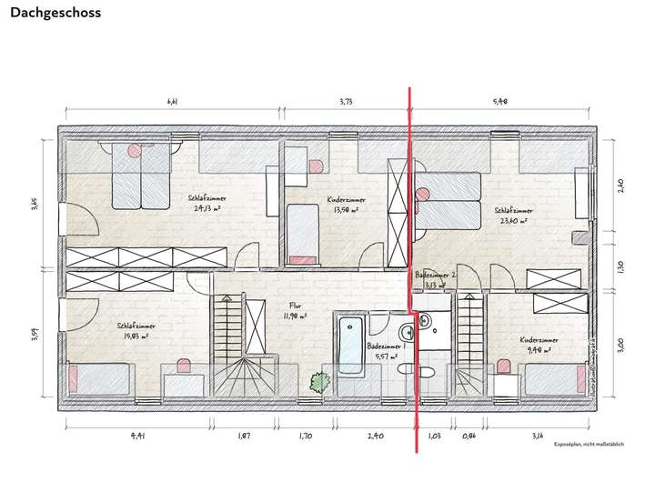 Ein kleiner Bereich des Dachgeschosses war ursprünglich ein Bodenraum. Dieser wurde später zu Wohnzwecken ausgebaut. Es handelt sich dabei um den Dachgeschoss-Bereich der Wohneinheit II.