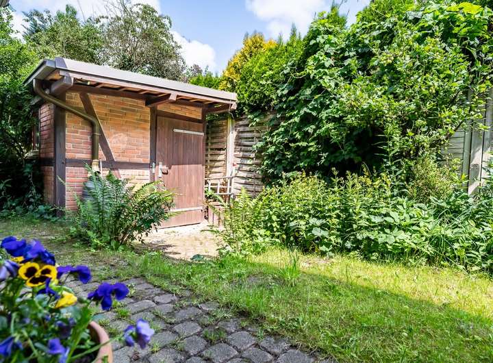 Im vorderen Grundstücksbereich steht ein PKW-Stellplatz zur Verfügung. Im herrlich eingewachsenen Garten gibt es einen kleines Gartenhaus, welches Platz bereit hält für Gartengeräte und ähnliches.