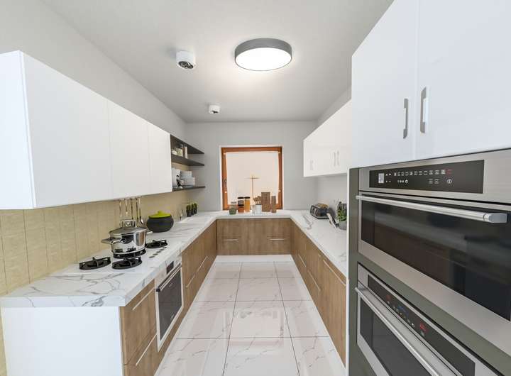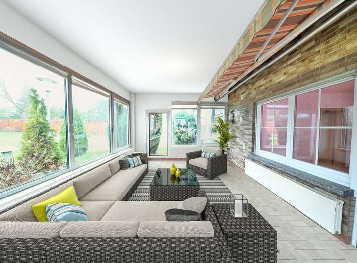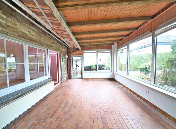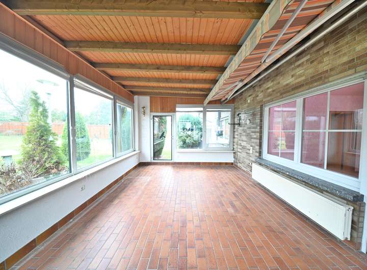 Im Erdgeschoss befinden sich die Küche, das Gäste-WC, das Badezimmer und zwei Schlafzimmer sowie ein knapp über 30 qm großzügig gestaltetes Wohn- und Esszimmer. Angrenzend an das großzügige Wohnzimmer befindet sich der ebenso großzügige Wintergarten mit Blick auf den großen gemütlichen Garten. Dieser lädt im Sommer gerade zu zum Sonnenbaden ein.