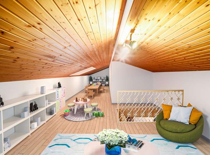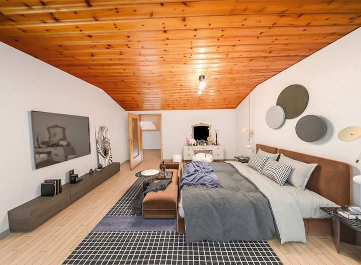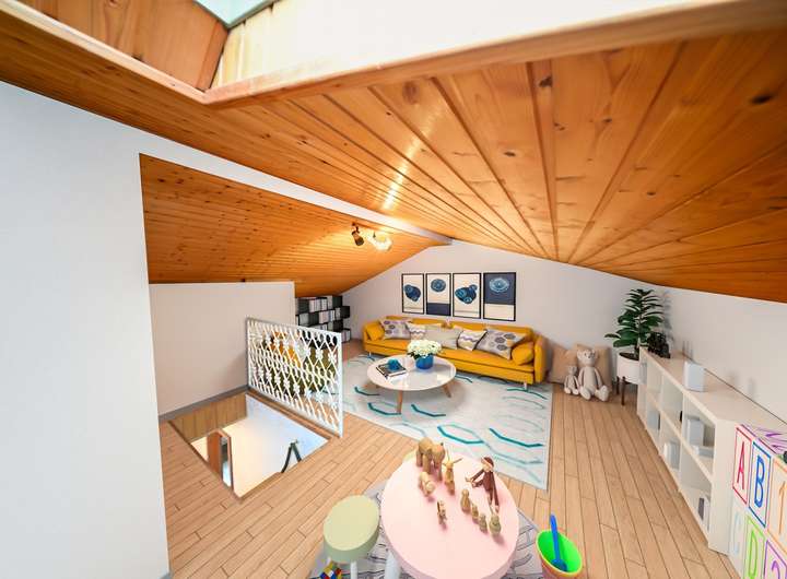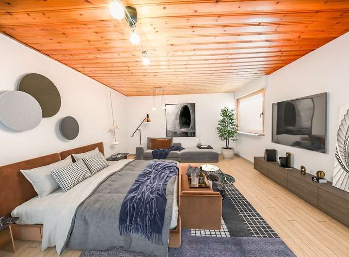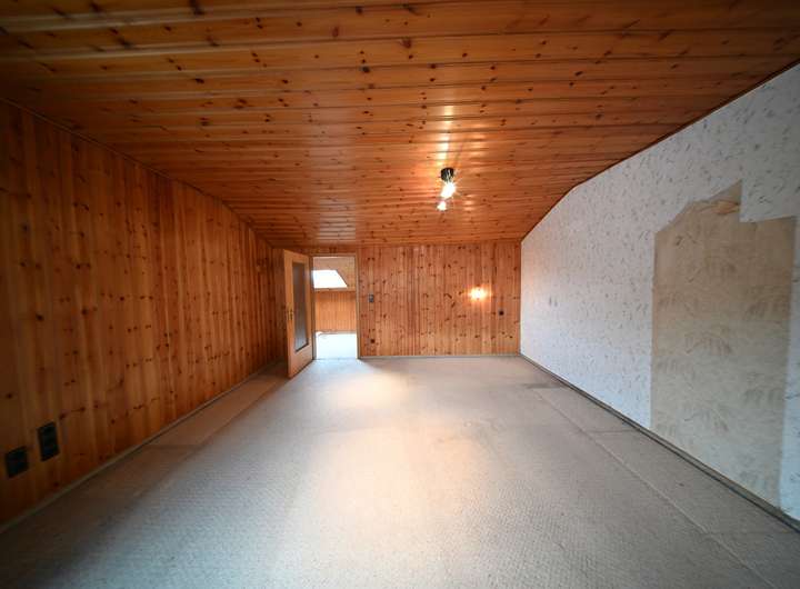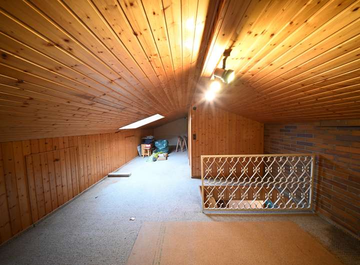 Im Dachgeschoss befindet sich ein weiterer größerer Raum, den man als Schlafzimmer nutzen könnte oder man nutzt den kompletten Dachraum als "Hobbyraum".