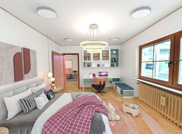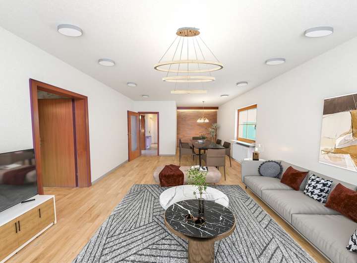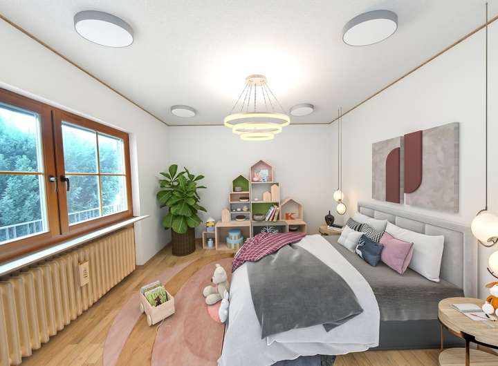 Es eignet sich sowohl für Paare mit größerem Platzbedarf, zum Wohnen und Arbeiten als auch für die kleine Familie!