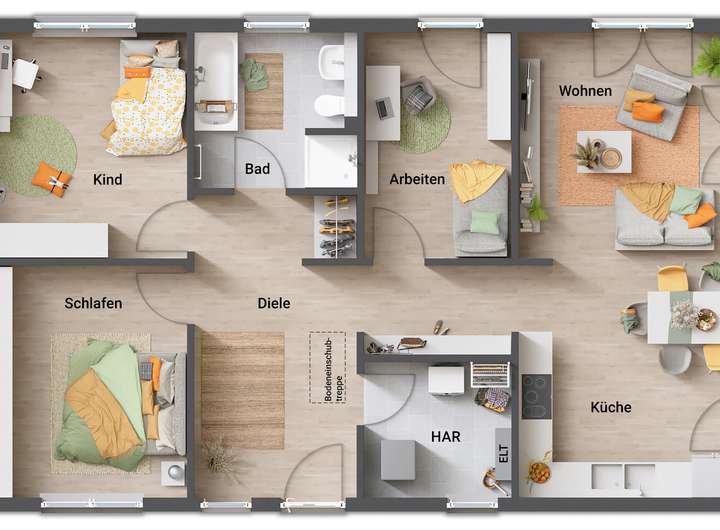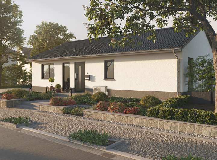 Bei dem Bungalow handelt es sich um ein Beispiel. Gern können Sie aus unserer Massivhausserie oder ein Zweifamilienhaus auswählen.