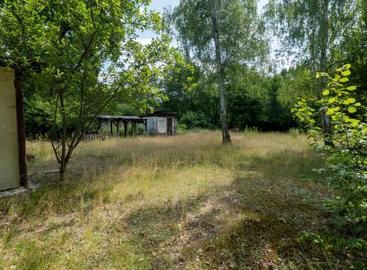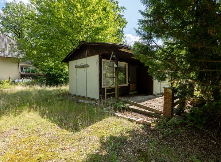 Auf dem Grundstück steht ein desolater Wochenendbungalow sowie ein Schuppen.