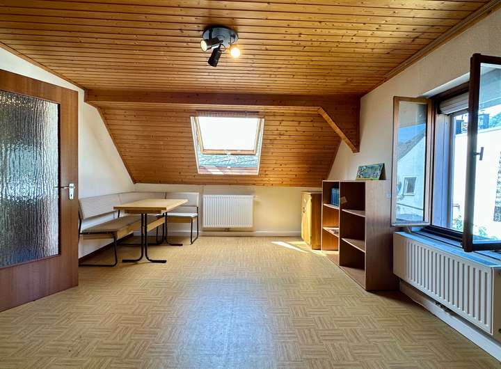 Im ausgebauten DG besteht die Möglichkeit, eine separate -familiäre- Einheit einzurichten: Neben einer äußerst behaglichen Räumlichkeit, welche Wahlweise als Schlafzimmer, Wohnzimmer oder Büro genutzt werden kann, sind auf dieser Ebene ein weiteres Zimmer, eine kleine Küche und ein kleines Duschbad als Einheit in sich geschlossen.