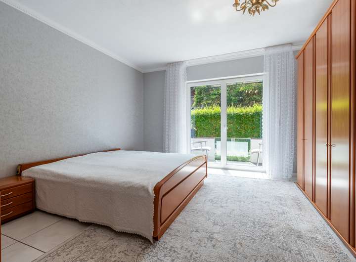 Draußen lädt die Süd-Ost-Terrasse zu Sonnenstunden vom Morgen bis zum Nachmittag ein. Der blickdichte Garten verspricht dabei absolute Privatsphäre – perfekt für entspannte Stunden im Grünen oder ungestörtes Sonnenbaden.