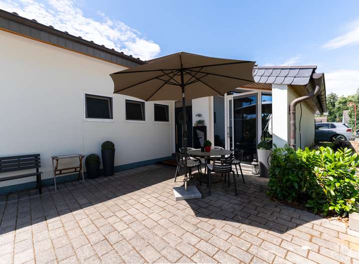 - Großes Grundstück mit Terrasse und gepflegtem Garten