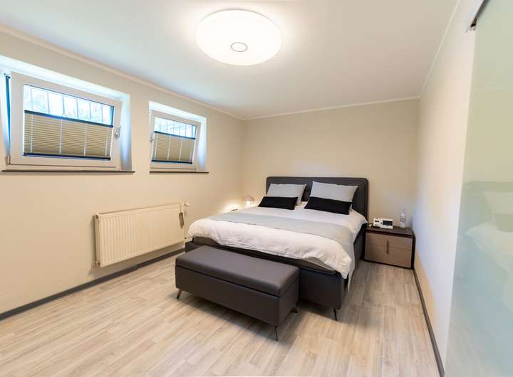 Das ausgebaute Untergeschoss erweitert das Raumangebot deutlich. Es verfügt über ein weiteres Schlafzimmer, ein zusätzliches Badezimmer sowie mehrere praktische Abstellräume – ideal für Gäste, Jugendliche oder als Homeoffice.