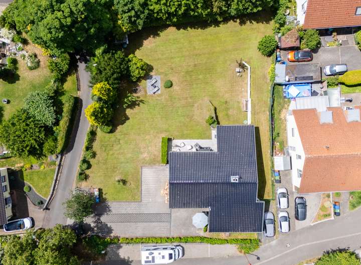 Die großzügige Einfahrt bietet ausreichend Platz für mindestens vier Fahrzeuge. Das rund 1.365 m² große Grundstück überzeugt mit einer sonnigen Terrasse und einem gepflegten Garten – perfekt für entspannte Stunden im Freien und genügend Raum für Familie und Freizeit.