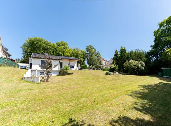 In bevorzugter Wohnlage auf dem Weißen Berg erwartet Sie dieser stilvolle Bungalow aus dem Jahr 1964. Das Haus wurde umfassend renoviert, erfüllt moderne Wohnstandards und verfügt über eine ausgebaute Wohn- und Nutzfläche von ca. 163 m². Mit einem weitläufigen Grundstück, hochwertiger Ausstattung und ausgebautem Untergeschoss bietet die Immobilie viel Platz und Komfort.