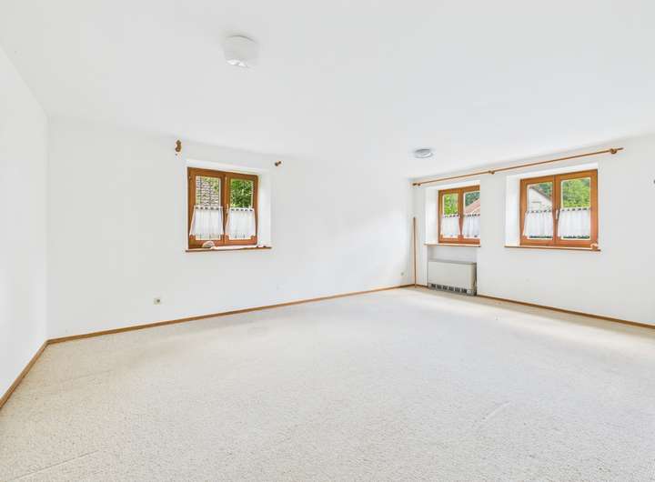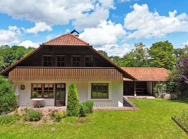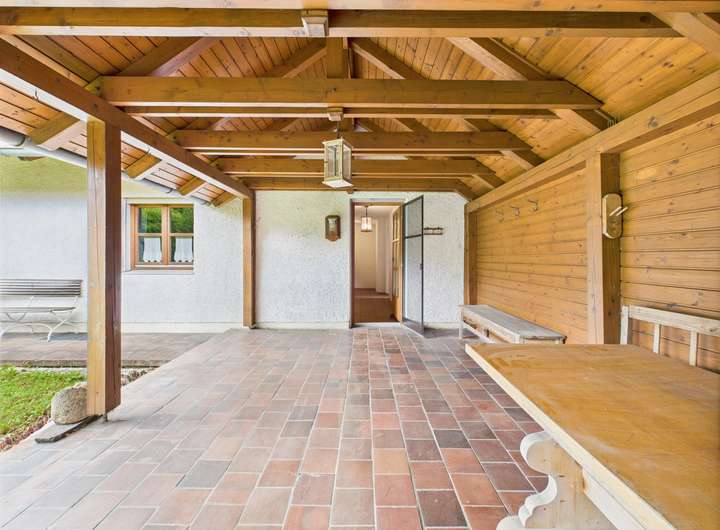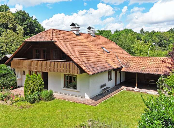 Das Haus überzeugt bereits beim Eintreten mit seinem alpenländischen Charakter und dem markanten Krüppelwalmdach, das stilvoll den ländlichen Charme unterstreicht. Auf drei Etagen und rund 250 m² Wohnfläche eröffnen sich acht Zimmer, die flexibel genutzt werden können – als großzügiger Familienbereich, Raum für Gäste oder Ihr persönliches Homeoffice. Dank der separaten Einliegerwohnung sind auch Mehrgenerationenwohnen, eine Pflegekraftwohnung oder die Kombination von Wohnen und Arbeiten unter einem Dach problemlos umsetzbar.