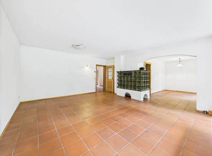 Ein besonderes Highlight ist der gemütliche Wohn-Essbereich mit Kachelofen, der an kalten Tagen wohlige Wärme spendet. Die Ausstattung umfasst eine Einbauküche, mehrere Bäder, Gäste-WC, zwei Terrassen und einen Balkon – so findet jeder seinen Lieblingsplatz. Die teilweise Unterkellerung bietet zusätzliche Stau- und Nutzflächen.