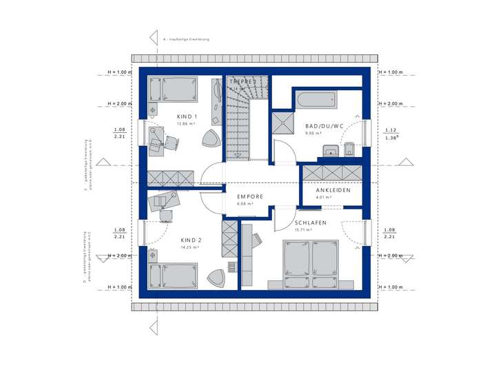 Die Ausstattungsvielfalt des EVOLUTION 143 zeigt sich auch in den komfortablen Details. Ein weitläufiger Garten auf dem 887 m² großen Grundstück lädt zu geselligen Abenden unter freiem Himmel ein. Die lichtdurchfluteten Räume schaffen eine freundliche Atmosphäre und sorgen dafür, dass der Alltag in einem besonderen Licht erstrahlt. Der gut durchdachte Grundriss unterstützt ein harmonisches Familienleben und bietet genügend Raum für Privatsphäre und gemeinsames Beisammensein.