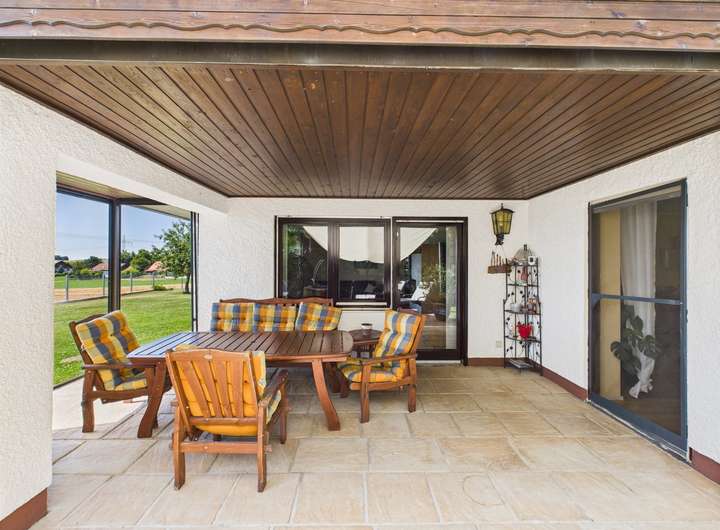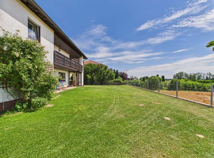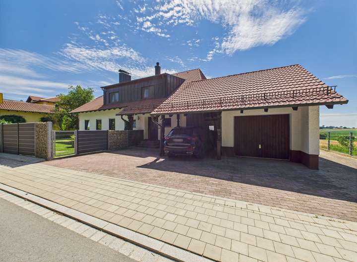 Der Außenbereich begeistert mit einem sonnigen Garten, Garage, Carport und weiteren Stellplätzen. Von hier genießen Sie einen unverbaubaren Weitblick über Felder, Wiesen und Wälder – ein außergewöhnliches Naturpanorama, das jeden Tag inspiriert.