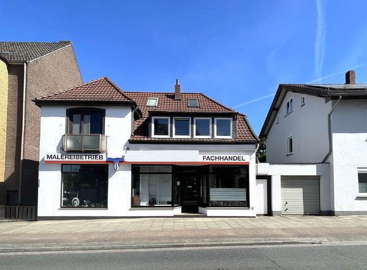 Dieses sanierungsbedürftige Wohn- und Geschäftshaus bietet eine seltene Gelegenheit für Investoren, Projektentwickler und handwerklich versierte Käufer, die auf der Suche nach einem Objekt mit Entwicklungspotenzial sind. Das Gebäude wurde im Jahr 1900 errichtet und verfügt über insgesamt 2 Einheiten. Diese sind aufgeteilt in eine Gewerbeeinheit im Erdgeschoss mit Werkstatt und eine Wohneinheit im Obergeschoss, so lässt sich z. B. das Wohnen und Arbeiten hervorragend miteinander kombinieren. Die Gesamtfläche beträgt ca. 321,12 m², wobei sich ca. 218,31 m² auf die Gewerbe- und ca. 102,81 m² auf die Wohnfläche verteilen. Das Erdgeschoss wurde für die gewerbliche Nutzung eines Malerbetriebs genutzt. Der damalige Betrieb ist mit großen Fensterfronten ausgestattet, die viel Licht in den straßenseitigen Verkaufsraum lassen und somit ideale Voraussetzungen für z. B. die Präsentation von Waren bieten. Der Bereich könnte sowohl für gewerbliche Tätigkeiten, wie Büroflächen oder Atelierräume genutzt werden, als auch für eine Erweiterung des Wohnraums (vorbehaltlich baurechtlicher Prüfung).