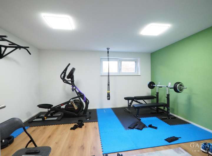 Im Untergeschoss befinden sich der Technikraum mit Anschluss für Waschmaschine und Trockner und drei weitere Räume. Zwei davon sind mit einer Fußbodenheizung ausgestattet und somit vielfältig nutzbar.Ein Raum hat einen überdachten Zugang zum Garten und wird derzeit als Werkstatt genutzt.