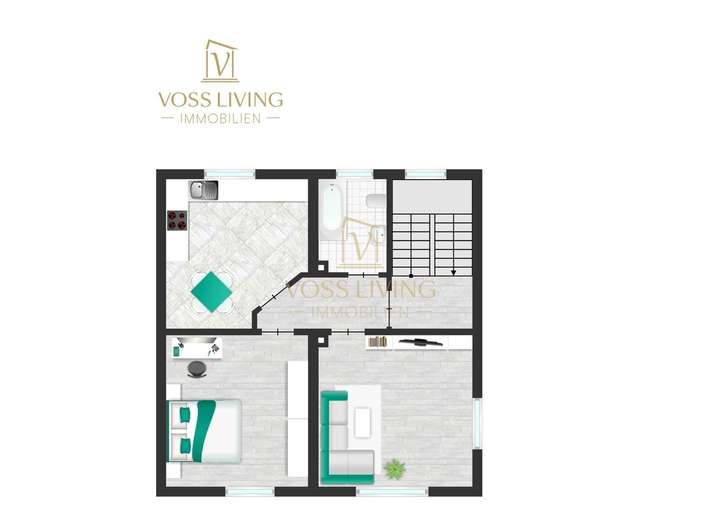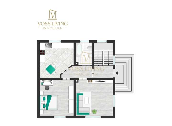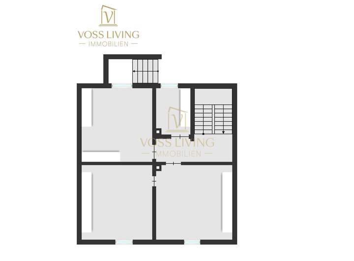 Vom Treppenhaus haben Sie Zugang zu den Wohnbereichen im Erdgeschoss bzw. Obergeschoss und zu zwei bzw. drei vorteilhaft geschnittenen Wohnräumen, die sich als Wohn- bzw. Schlafzimmer oder auch als Kinderzimmer eignen.
