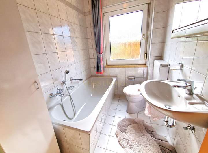 Des Weiteren haben Sie am Ende des Flurs Zugang zur Küche mit ausreichend Platz für eine Sitzmöglichkeit und einem schönen Blick in den Garten. Ein helles Tageslichtbad rundet die Etage ab.