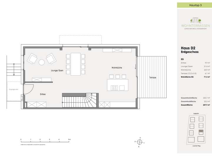 Die Angaben dienen der allgemeinen Information. Maßgebend für den Kauf sind die Bestimmungen der notariell beurkundeten Bezugsurkunde und des notariell abzuschließenden Kaufvertrags. Die bildlichen Darstellungen enthalten ausschließlich Nutzungs- und Gestaltungsbeispiele und geben nicht den endgültigen Ausbauzustand wieder, der hiervon abweichen kann. Sie stellen insbesondere keine Beschaffenheitszusagen oder Vereinbarungen dar. Allein maßgebend für den Leistungsumfang sind die Vereinbarungen im notariellen Kaufvertrag sowie die Baubeschreibung und die Baupläne, welche Bestandteil der notariellen Bezugsurkunde sind.