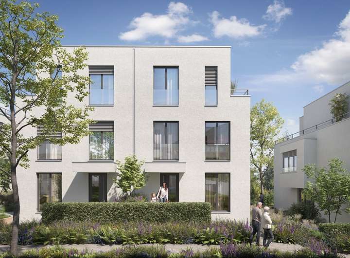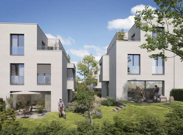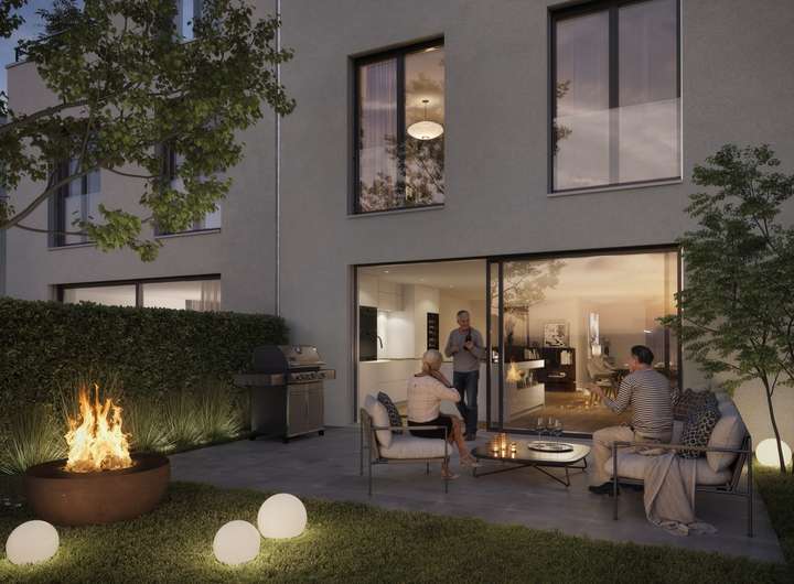 Dank der natürlichen Abschirmung durch die umliegende Bebauung entsteht hier ein besonders geschütztes Mikroklima mit hoher Aufenthaltsqualität: grün, ruhig und angenehm zurückgezogen.