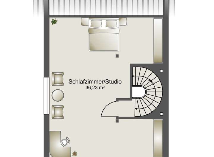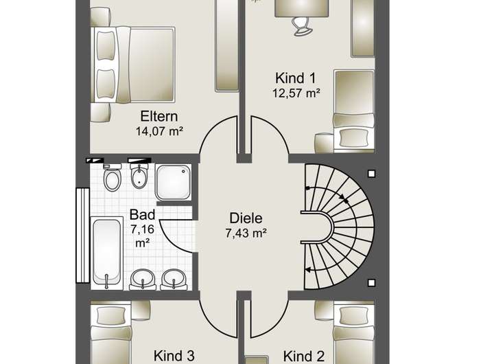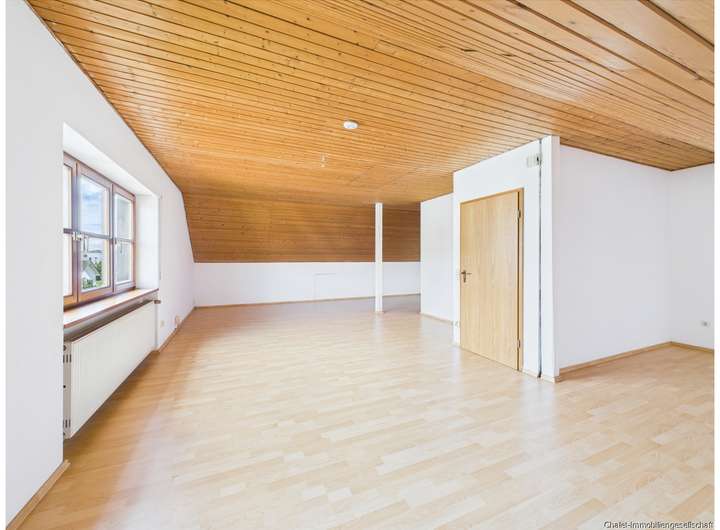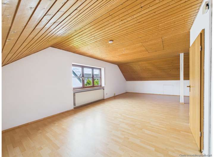 Im Obergeschoss des Hauses befinden sich vier Zimmer, welche individuell genutzt werden können. Ob als Kinder- Arbeits- oder Gästezimmer, bei durchschnittlich über 12 m² pro Zimmer genießen Sie maximale Flexibilität. Im Treppenhaus sowie dem Flur ist derselbe Boden wie im Erdgeschoss verlegt. In den Zimmern wurde vor ein moderner Laminatboden verlegt. Das hell geflieste Tageslicht-Badezimmer ist mit über 7 m² großzügig gehalten und verfügt neben der Dusche auch über eine Badewanne. Das Dachgeschoss versteht sich fast als ein „eigenes Loft“. Auf mehr als 36 m² Wohnfläche bzw. knapp 49 m² Wohn-Nutzfläche kann ein großzügiges Schlafzimmer mit getrennten Ankleiden oder Büroflächen eingerichtet werden. Der Raum ist mit einem hellen und gut gepflegten, zeitlosen Laminatboden ausgestattet.