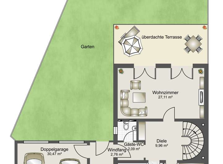 - zwei Garagenstellplätze und zwei Außenstellplätze