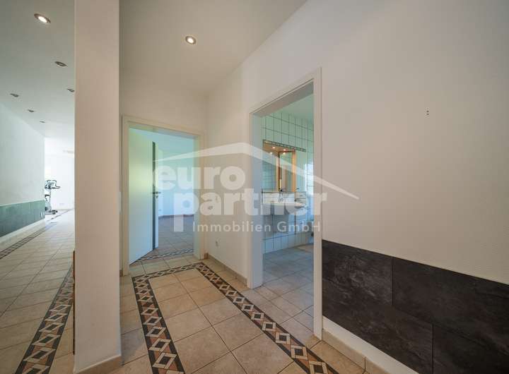 Die Ausstellung begrüßt Sie mit einer einladenden Diele und großzügigen Verkehrsflächen. Neben drei separaten Ausstellungsräumen und der Personalküche bietet die Einheit ein vollwertiges Badezimmer sowie verschiedene Lagerflächen. Der Bürotrakt bietet derzeitig insgesamt fünf eigenständige Büroräume samt Archiv, eine attraktive Ausstellungsfläche, einen Aufenthaltsraum sowie einen Umkleidetrakt mit Sanitärinstallationen. Hieran schließt sich die Gewerbehalle samt Technikraum, zwei Toiletten und drei separaten Sektionaltoren an.