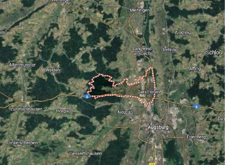 Rund sechs Kilometer östlich liegt der Flugplatz Augsburg.
