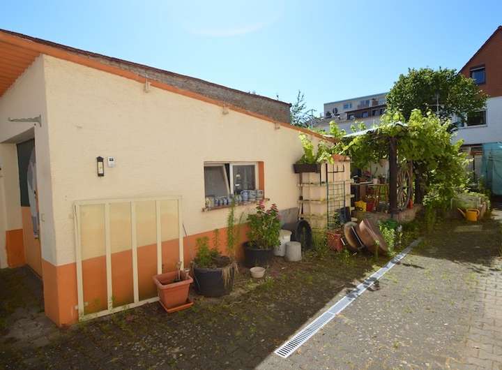 Das Grundstück bietet Ihnen eine Garage, sowie einen möglichen Stellplatz vor der Garage. Zusätzliche Abstellmöglichkeiten und Nutzflächen finden Sie in diesem Innenhof in den anliegenden kleinen Nebengebäuden und einer zusätzlichen Terrasse.