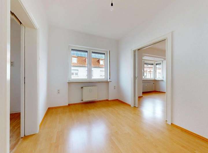 Die Wohnung befindet sich im 2. Obergeschoss des gepflegten Wohn- und Geschäftshauses. Das Highlight der Wohnung ist das lichtdurchflutete Wohnzimmer immer, welches direkten Zugang zu dem großen Südwestbalkon mit Panoramablick über die Stadt Pirmasens hat. Zwei Zimmer (davon ein Durchgangszimmer) bieten sich als Schlafräume an. Die moderne Küche, inklusive der Elektrogeräte, steht den zukünftigen Mietern zur kostenlosen Nutzung zur Verfügung. Das Tageslichtbad verfügt über eine Badewanne, der Abstellraum über Anschlüsse für eine Waschmaschine.