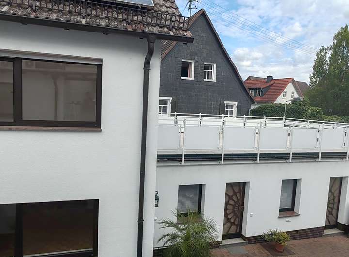 • Im Obergeschoss befindet sich eine ca. 35 m² große Fläche mit Terrasse, bequem direkt vom Wohnzimmer erreichbar – ideal für entspannte Außenmomente und einen lichtdurchfluteten Rückzugsraum.