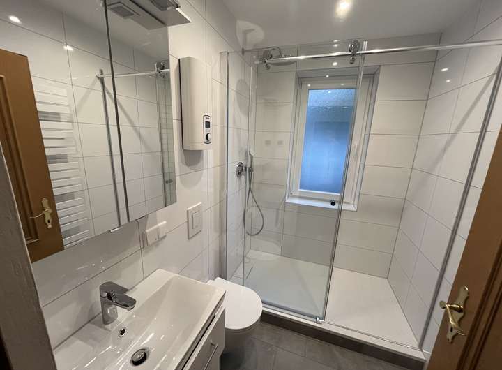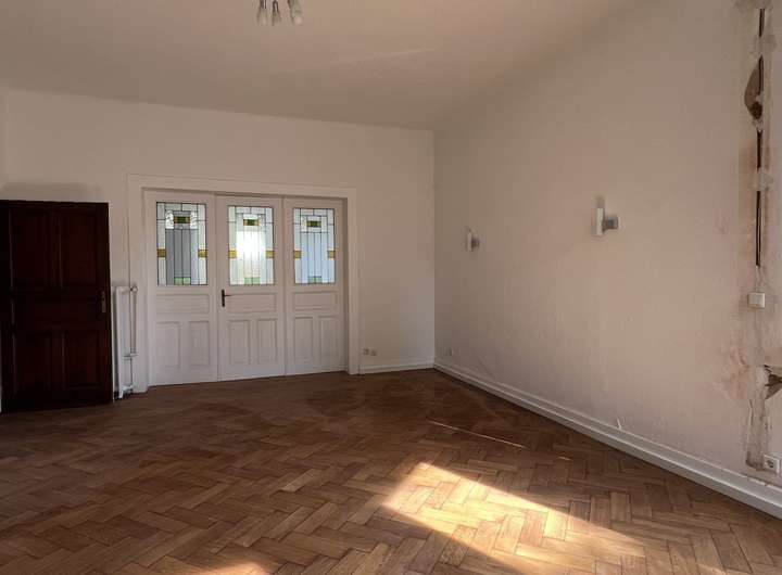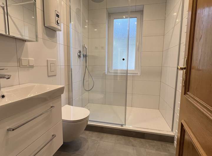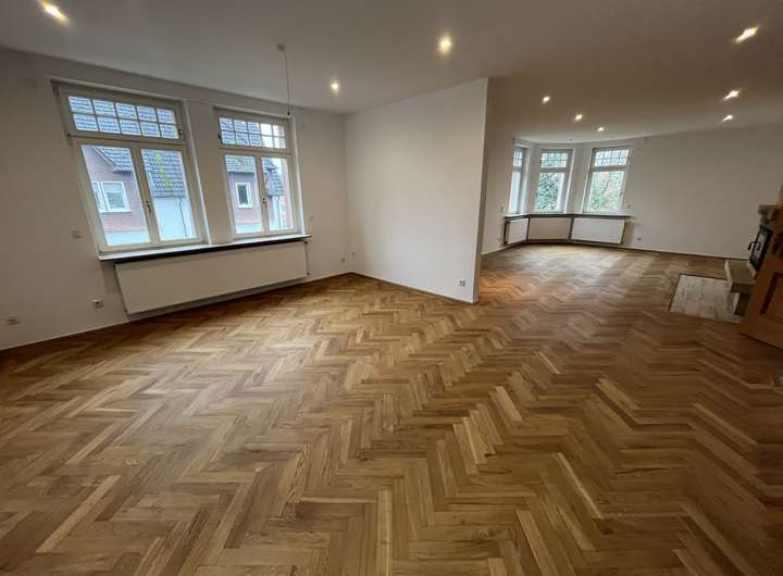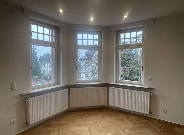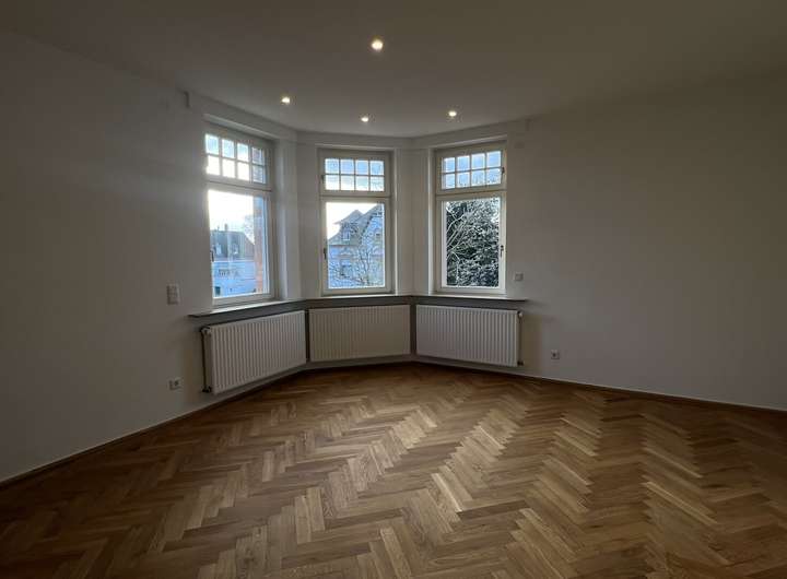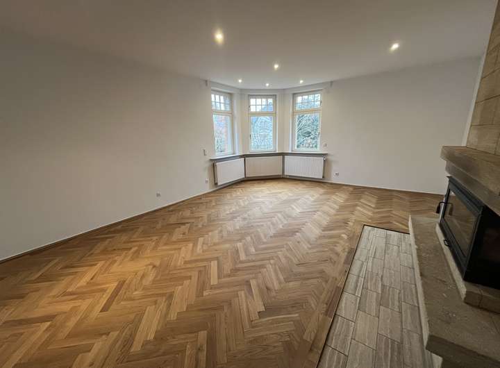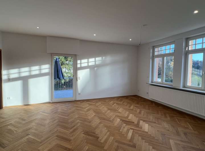 Im Zuge der Renovierungsarbeiten werden teilweise neue, hochwertige Fenster eingebaut, die in ihrer Ausführung sowohl modernen Ansprüchen als auch denkmalpflegerischen Vorgaben gerecht werden. Die eleganten Holzfenster fügen sich mit ihrer klassischen Sprossenaufteilung harmonisch in das historische Gesamtbild des Gebäudes ein. Zugleich erfüllen sie die Anforderungen der Schallschutzklasse 4, sodass sie nicht nur optisch, sondern auch funktional höchsten Wohnkomfort bieten. Eine Einbauküche ist im Mietpreis bereits enthalten. Darüber hinaus werden sämtliche Bäder vor Übergabe umfassend renoviert. An die Garage angrenzend befindet sich eine überdachte Pergola mit einem zusätzlichen Badezimmer – ideal nutzbar als Außenbereich mit praktischer Ergänzung.