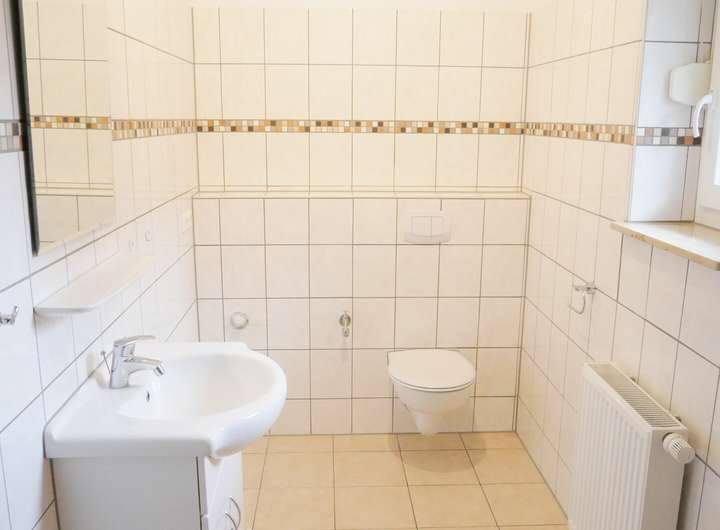 Weiterhin finden wir im EG eine geräumige Küche mit EBK und Sitzgelegenheit, ein WC sowie einen Abstell-/Vorratsraum, in dem auch die Heizungsanlage untergebracht ist.