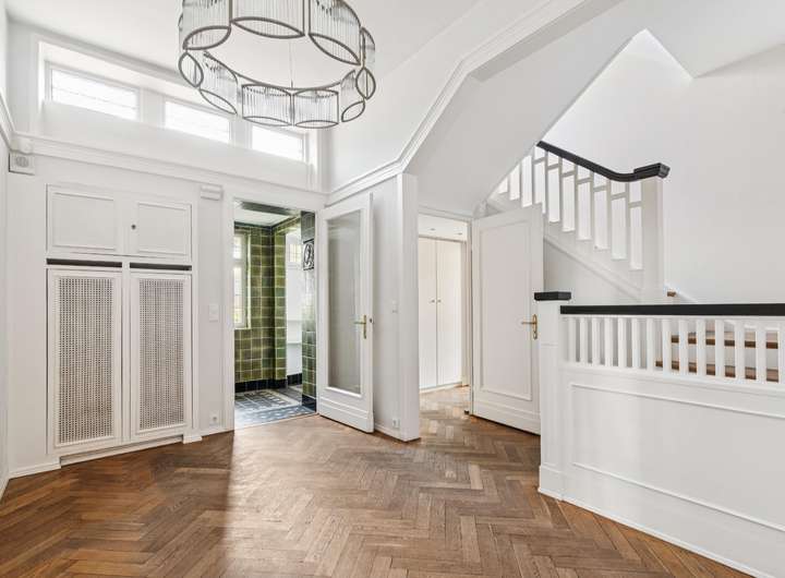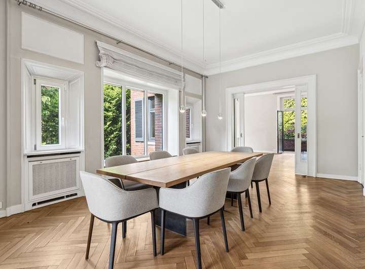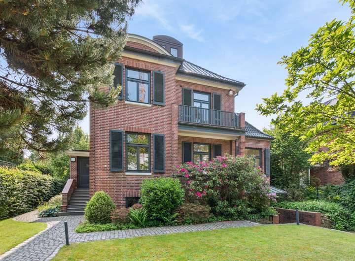 In einer der exklusivsten Lagen Hamburgs, zwischen dem idyllischen Hirschpark und dem Elbufer, befindet sich diese eindrucksvolle Rotklinker-Villa aus dem Jahr 1910 – das perfekte Zuhause für Familien, die Wert auf Stil, Geschichte und Qualität legen. Schon beim Betreten des Hauses wird deutlich: Diese Villa vereint klassische Architektur mit zeitgemäßem Komfort. Im Erdgeschoss erwartet Sie edles Fischgrätparkett, das dem Wohnbereich eine elegante, warme Atmosphäre verleiht. Der repräsentative Wohnbereich geht fließend in das angrenzende Esszimmer über und mündet schließlich in den großzügigen Wintergarten. Von hier aus öffnet sich der Blick in den traumhaft eingewachsenen Südostgarten – ein geschützter Rückzugsort mit viel Raum für Familie, Gäste und Ruhe. Die Küche wurde 2017 umfassend modernisiert. Mit stilvollen Poggenpohl-Einbauten, hochwertigen Gaggenau-Geräten und sorgfältig restaurierten Delfter Fliesen fügt sie sich harmonisch in das historische Gesamtbild ein und erfüllt zugleich höchste Ansprüche an Funktionalität und Design. Auch in technischer Hinsicht wurde diese Villa über die Jahre hinweg mit viel Bedacht und Investition gepflegt und modernisiert: Bereits 2007 wurde das Dach vollständig neu eingedeckt. In den Jahren 2013 und 2015 folgten die Sanierungen der stilvoll ausgestatteten Bäder. Der Wintergarten erhielt 2015 neben neuen Fenstern auch eine Fußbodenheizung, die das ganze Jahr über für behagliche Stunden sorgt. 2017 wurde das Parkett in den oberen Etagen neu verlegt, ebenso die Treppe ab dem Erdgeschoss – stets mit Blick auf Qualität, Handwerk und stilistische Harmonie. Im Jahr 2019 wurde der gesamte Kellerbereich umfassend saniert: Decken und Böden wurden vollständig erneuert, so dass ein wohnlich nutzbarer Bereich entstand – ideal für Fitness, Wellness oder als zusätzlicher Hobbyraum. Der Keller wurde von außen abgedichtet und eine Drainage verlegt.Im Zuge der Kernsanierung erfolgte in diesem Bereich die Erneuerung aller Wasser- und Heizungsleitungen. Für zusätzliche Sicherheit sorgt eine moderne Alarmanlage sowie Sicherheitsglas in den Kellerfenstern – unauffällig integriert und perfekt abgestimmt auf die Bedürfnisse eines modernen Familienhaushalts. Diese Villa ist mehr als nur ein Haus – sie ist ein stilvolles Refugium, das den Charme vergangener Zeiten bewahrt und zugleich den Komfort und die Sicherheit heutiger Wohnansprüche bietet. Ein Zuhause für Generationen – mitten in Nienstedten, mit direkter Nähe zur Elbe, renommierten Schulen, Parkanlagen und dem besonderen Flair eines der schönsten Stadtteile Hamburgs.