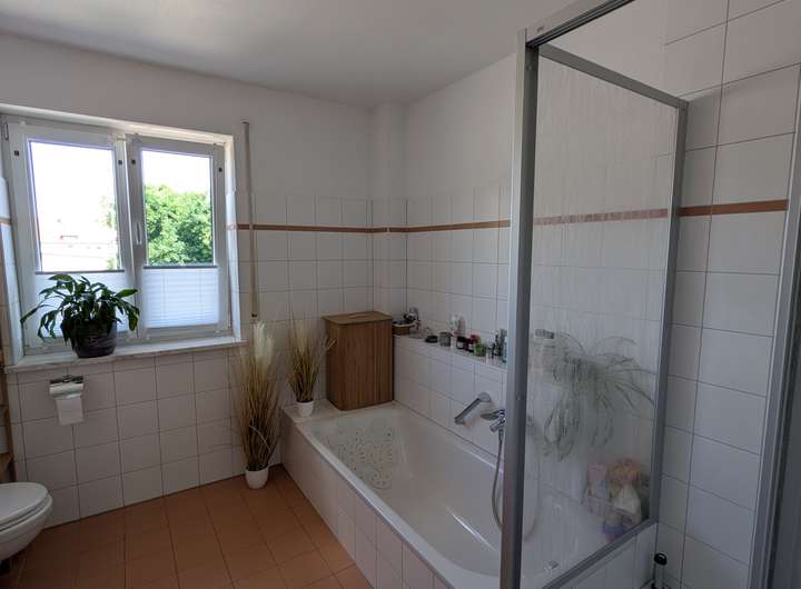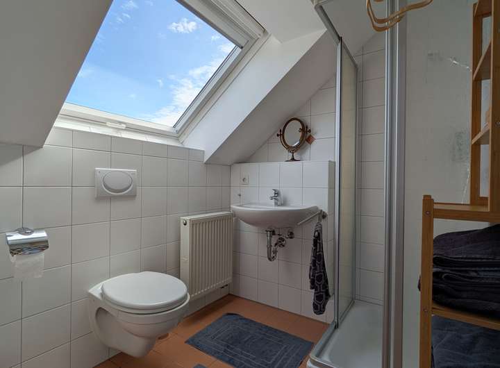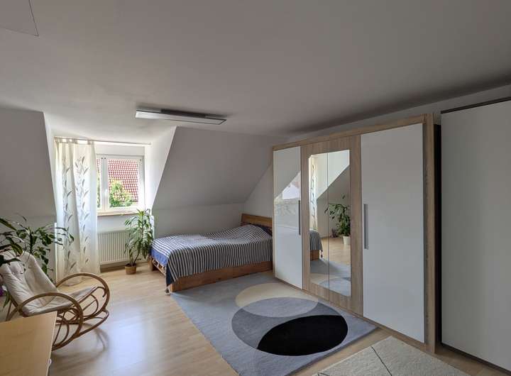Im ausgebauten Dachgeschoss mit wenigen halbhohen Schrägen finden Sie einen zusätzlichen sehr großen Wohnbereich mit weiterem Duschbad, der beispielsweise als weiteres (Gäste-) Schlafzimmer und/oder Arbeitszimmer genutzt werden kann. Im darüber liegenden Speicher gibt es weiteren Stauraum.