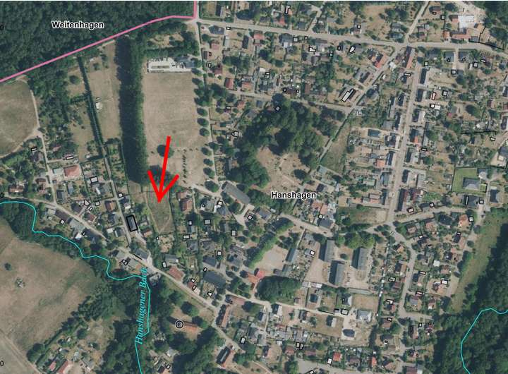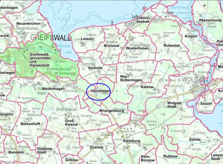 In idyllischer und zentraler Lage von Hanshagen befindet sich dieses Baugrundstück mit einer Größe von 1.605 m ². Bis zur nahe gelegenen Stadt Greifswald sind es nur etwa 8 Km und bis nach Lubmin sind es ca. 12 km.